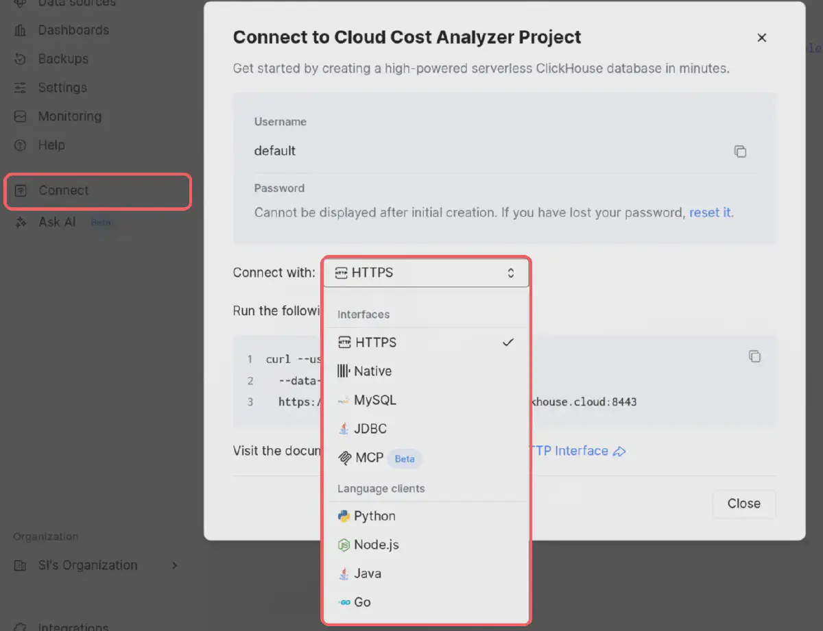 After you signed up for ClickHouse Cloud (there’s a 30-day free trial) and created a service on either GCP, AWS, or Azure, you have different options to ingest the data.